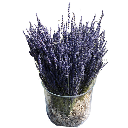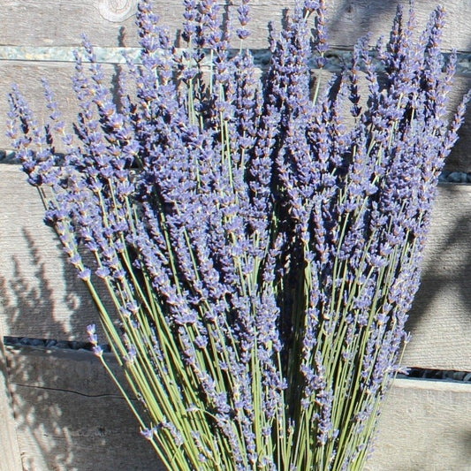 Angustifolias are the traditional English garden lavender varieties. They have narrow leaves, shorter stems with flower heads that are barrel shaped as opposed to spiky. Their fragrance is sweeter than their hybrid cousins the Lavandins (French), and because of this, their oil is coveted for aromatherapy & perfume. They bloom earlier in the year than the Lavandins. Their dried blossoms are used in cooking, crafting & cosmetics.
